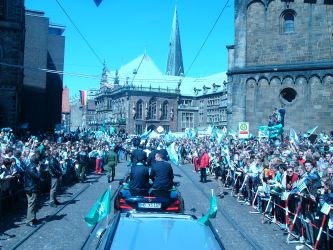 (left) Paul Stalteri and Johan Micoud prepare to leave with the parade